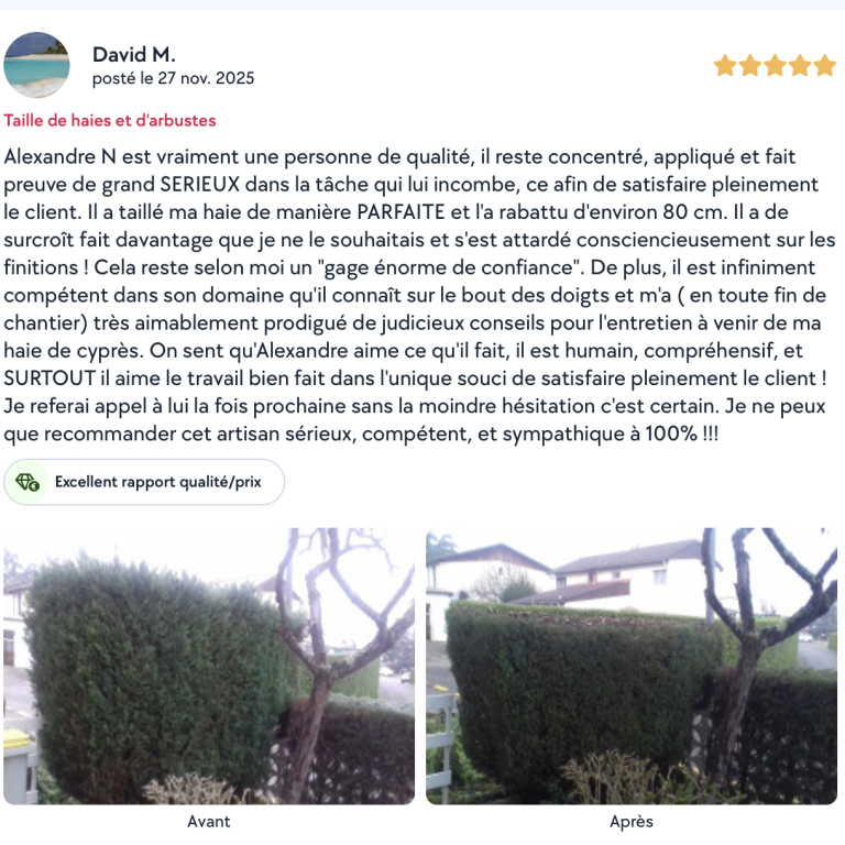 Chaque intervention est réalisée avec soin, dans le respect de votre environnement et de vos attentes.