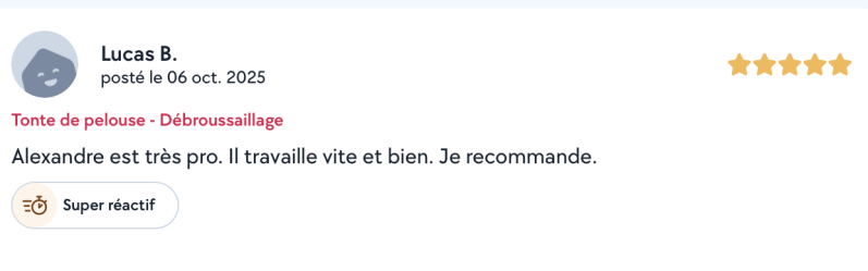 Que ce soit pour une intervention ponctuelle ou un entretien régulier, je m’engage à fournir un travail propre, efficace et durable, avec un seul objectif : votre satisfaction.